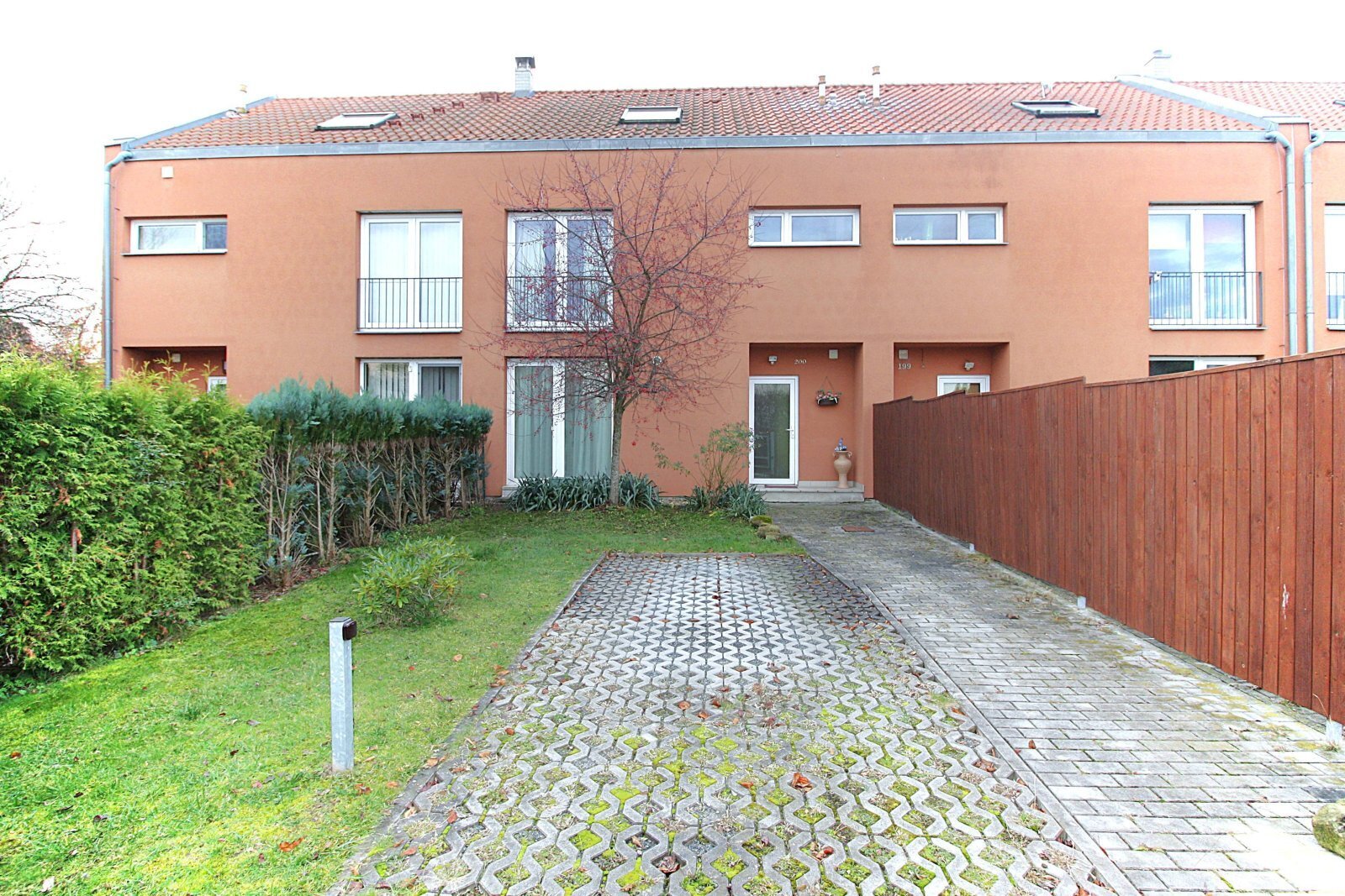 Nabízíme prostorný řadový dům, dispozičně řešen jako 4+1, se zahradou, zahradní terasou, terasou, oplocenou předzahrádkou, s parkovacím místem, v historické obci Jenštejn, 1 km od severovýchodní hranice Prahy. Vstup a vjezd k domu je samostatný, oddělen plotem, parkovací místa se nachází před domem na vlastním oploceném pozemku. Dům z r.2007 se skládá ze tří podlaží (dvě podlaží + podkroví), celková užitná plocha domu je 144,53m2. V 1. podlaží domu se nachází kuchyň (12 m2), prakticky propojena s obývacím pokojem (22 m2), z obývacího pokoje je vstup na zahradní terasu, do zahrady se vzrostlými stromy. Zahradní domek slouží skvěle jako úložný prostor. V 1. podlaží domu se nachází WC s umyvadlem. Do 2. podlaží vede pohodlné dřevěné schodiště, zde jsou dvě ložnice (17,5 a 16 m2) a koupelna s vanou a WC (přes 5 m2), s dostatkem denního světla, v koupelně je umístěný kombinovaný plynový kotel s integrovaným zásobníkem, který zajišťuje vypění domu a ohřev vody. Z jedné z ložnic je vstup na terasu. Z terasy a zahrady, zahradní terasy je díky tomu, že se dům nachází na kraji obce, volný výhled. Příjemné podkroví je velké 40 m2, není problém zde dobudovat další koupelnu. Dům je napojen na veškeré inženýrské sítě (el., vodovod, kanalizace, plyn). V místě je velmi dobrá dopravní dostupnost (bus na Černý Most, Letňany), v obci se nachází pošta, škola, školka. PENB se připravuje. Koupi domu lze financovat prostřednictvím hypotečního úběru, který rád vyřídí náš specialita.
