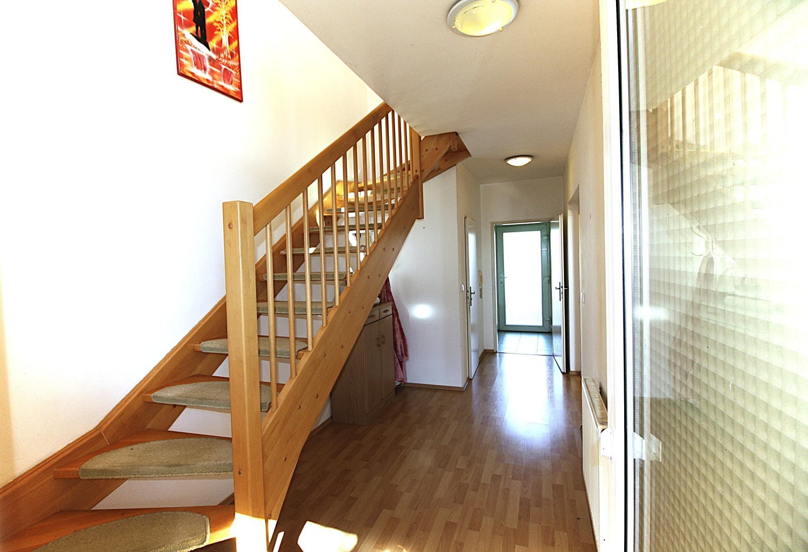 Nabízíme prostorný řadový dům, dispozičně řešen jako 4+1, se zahradou, zahradní terasou, terasou ve 2 NP domu s výhledem na zahradu a oplocenou předzahrádkou, v historické obci Jenštejn, 1 km od severovýchodní hranice Prahy. Vstup a vjezd k domu je samostatný, oddělen plotem, parkovací místa se nachází před domem na vlastním oploceném pozemku. Dům z r.2007 se skládá ze tří podlaží (dvě podlaží + podkroví), celková užitná plocha domu je 144,53m2. V 1. podlaží domu se nachází kuchyň (12 m2), prakticky propojena s obývacím pokojem (22 m2), z obývacího pokoje je vstup na zahradní terasu, do zahrady se vzrostlými stromy. Zahradní domek slouží skvěle jako úložný prostor. V 1. podlaží domu se nachází WC s umyvadlem. Do 2. podlaží vede pohodlné dřevěné schodiště, zde jsou dvě ložnice (17,5 a 16 m2) a koupelna s vanou a WC (přes 5 m2), s dostatkem denního světla, v koupelně je umístěný kombinovaný plynový kotel s integrovaným zásobníkem, který zajišťuje vytápění domu a ohřev vody. Z jedné z ložnic je vstup na terasu. Z terasy a zahrady, zahradní terasy je díky tomu, že se dům nachází na kraji obce, volný výhled. Příjemné podkroví je velké 40 m2, není problém zde dobudovat další koupelnu. Dům je napojen na veškeré inženýrské sítě (el., vodu, kanalizaci, plyn). V místě je velmi dobrá dopravní dostupnost (bus na Černý Most, Letňany), v obci se nachází pošta, škola, školka. Koupi domu lze financovat prostřednictvím hypotečního úběru, který rád vyřídí náš specialita. K dispozici ihned.