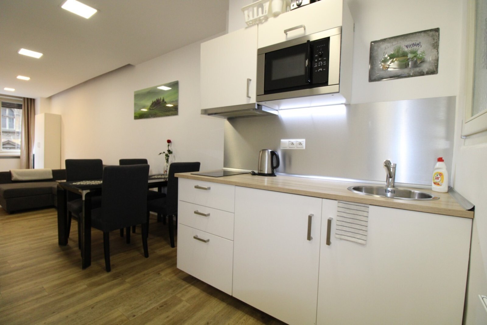 Nabízíme pronájem zařízeného bytu 1+kk ve 2. patře cihlového domu na Praze 1, Nové Město, ulice Opletalova, kousek od metra A,C - Muzeum.