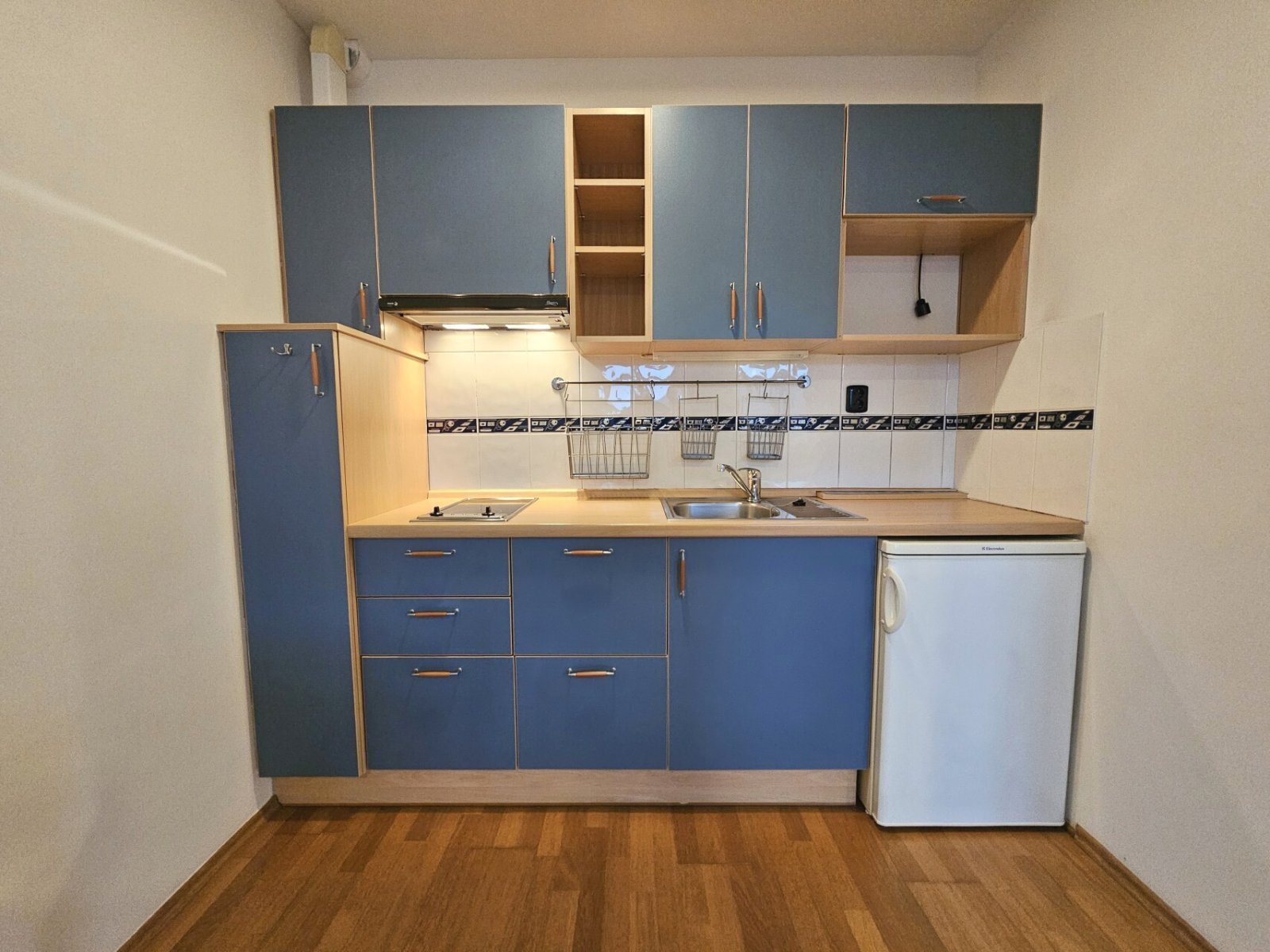 Kuchyňská linka je vybavená menší lednicí, sklokeramickou dvouplotýnkou, digestoří.