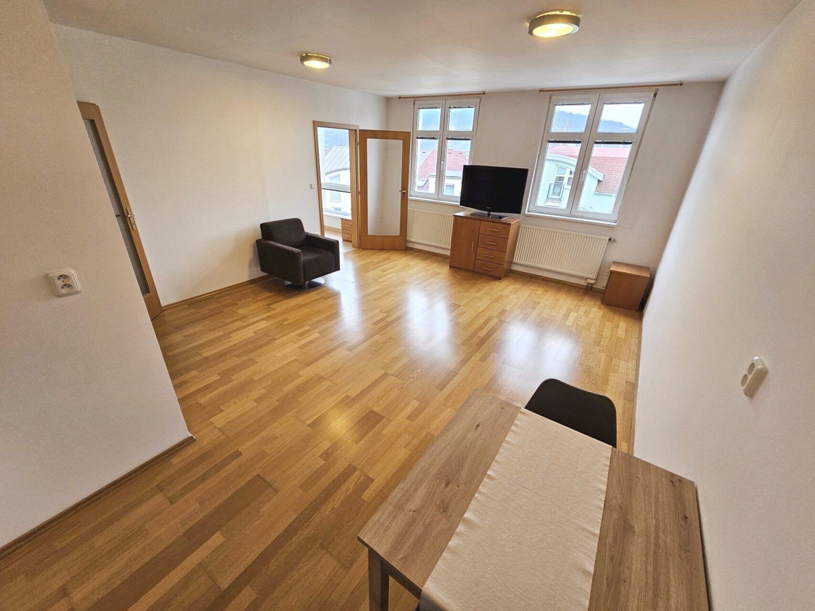 Byt je částečně zařízen nábytkem - po dohodě je možné doplnit i postel.