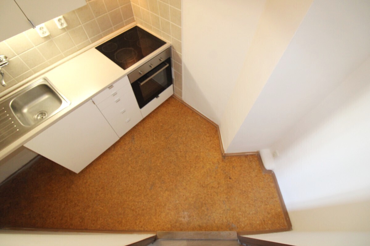V bytě se nachází obývací pokoj, ložnice se spacím patrem a šatní skříní, menší kuchyňka (linka se dřezem, el. troubou, digestoří, sklokeramickou varnou deskou a místem na pračku), koupelna s vanou a s WC a předsíň.