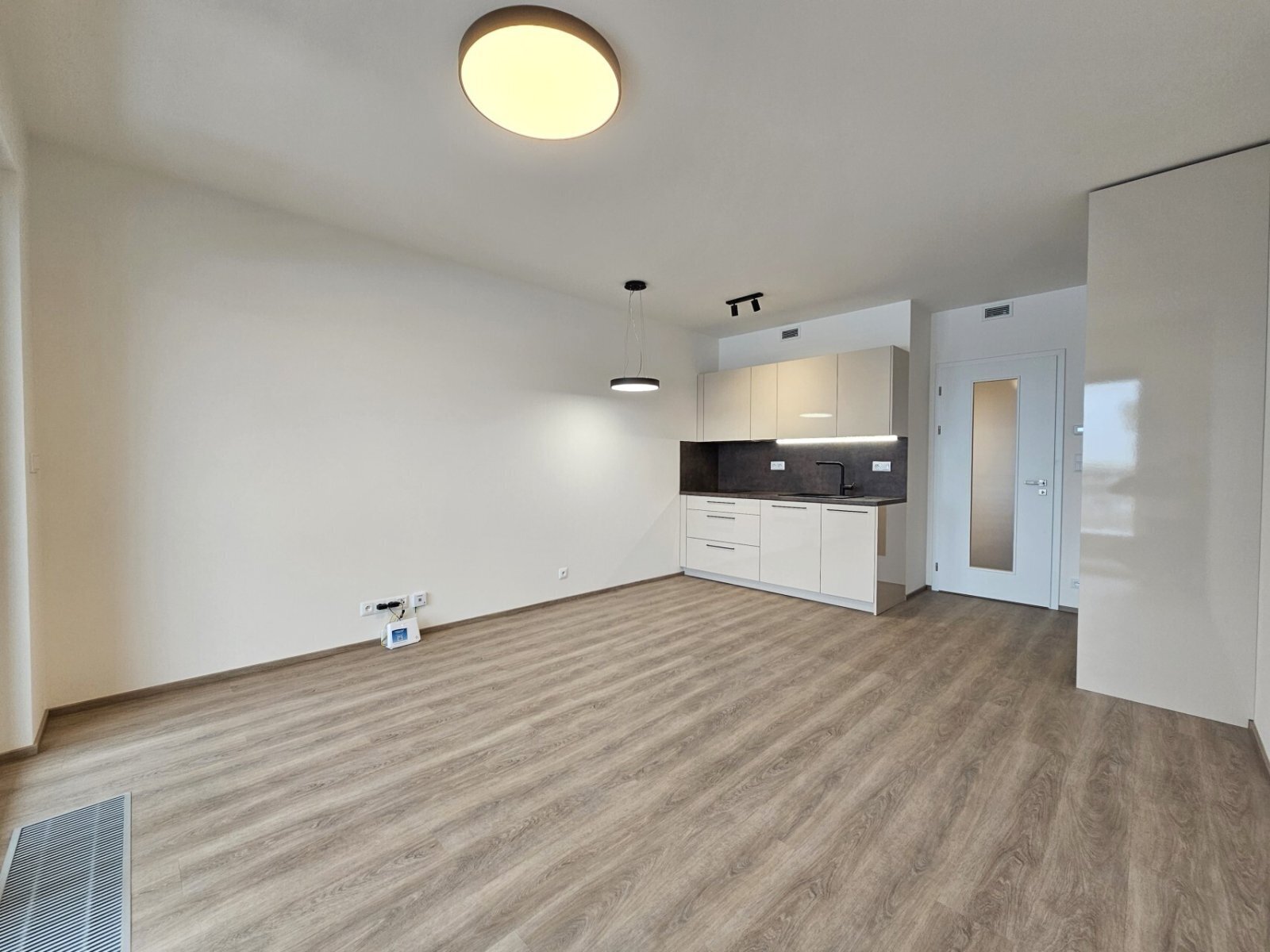 Nabízíme dlouhodobý pronájem nového bytu 1+kk/L (byt 33,7 m2 + lodžie 5,3 m2 + komora na patře 3,3 m2) v 9. podlaží novostavby na Praze 9, Hloubětín, ulice Poděbradská.