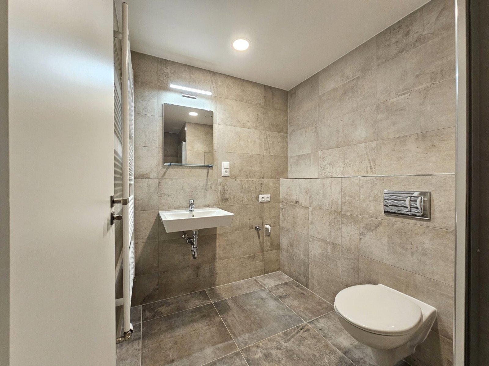 Koupelna se sprchovým koutem a s WC a je zde i místo na pračku.