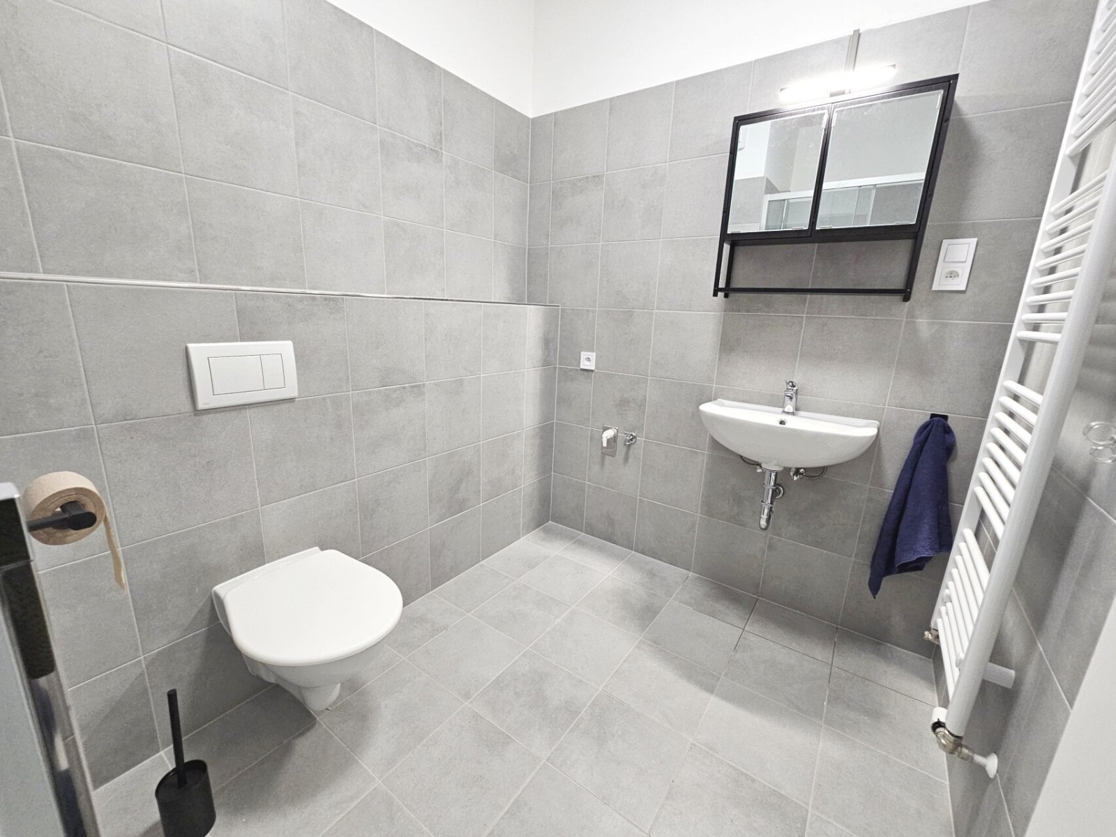 2) koupelna s WC (4,3 m²) a prostorným sprchovým koutem (po dohodě možné zařídit pračku)
