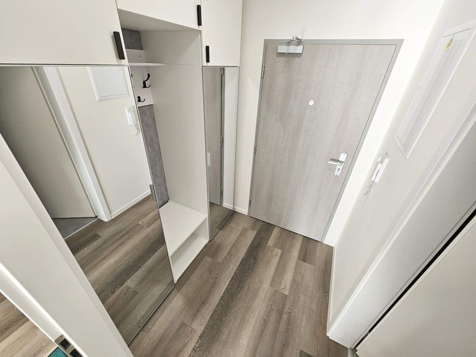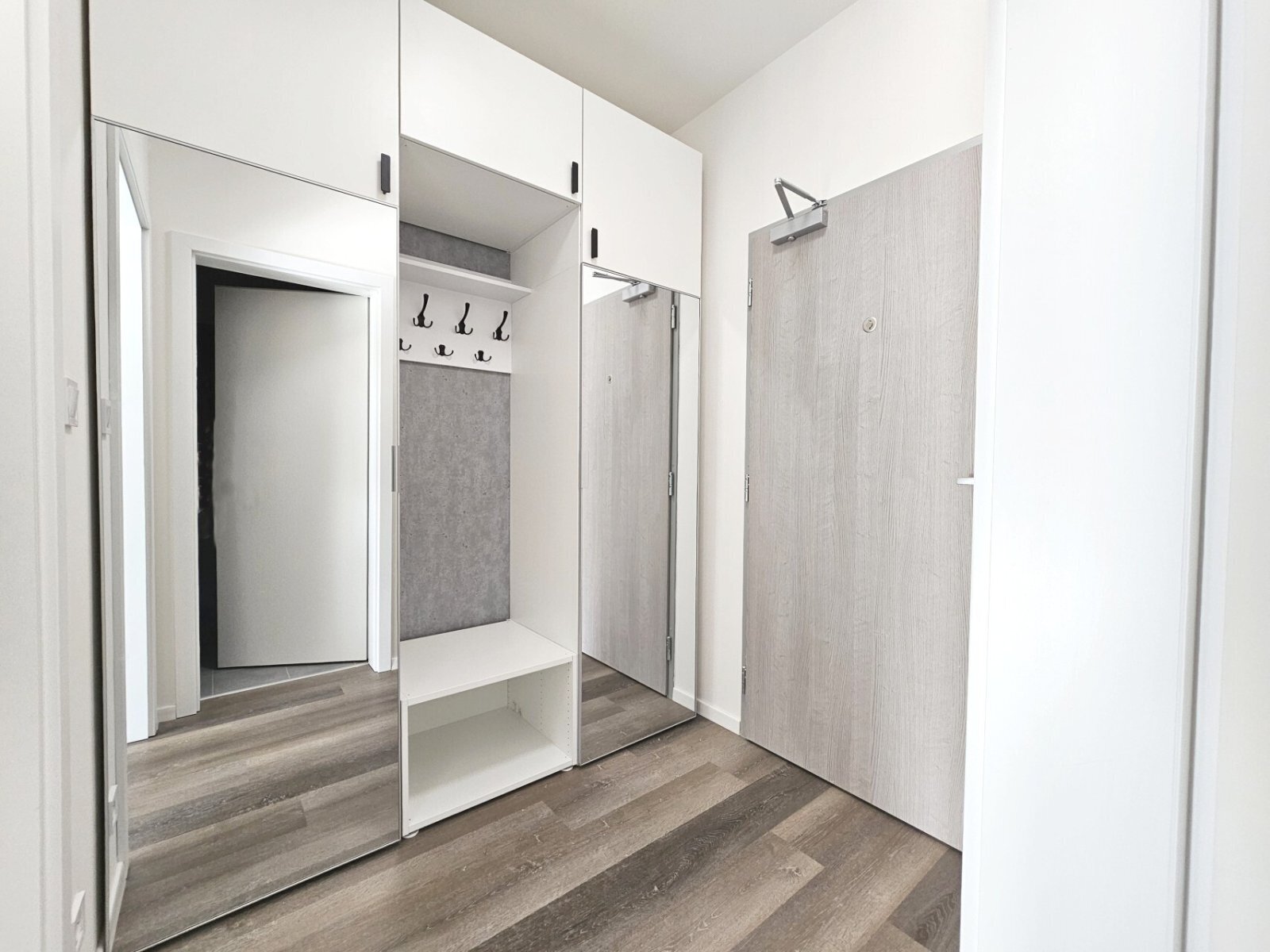 1) vstupní chodba (3,7 m²) s šatními skříněmi