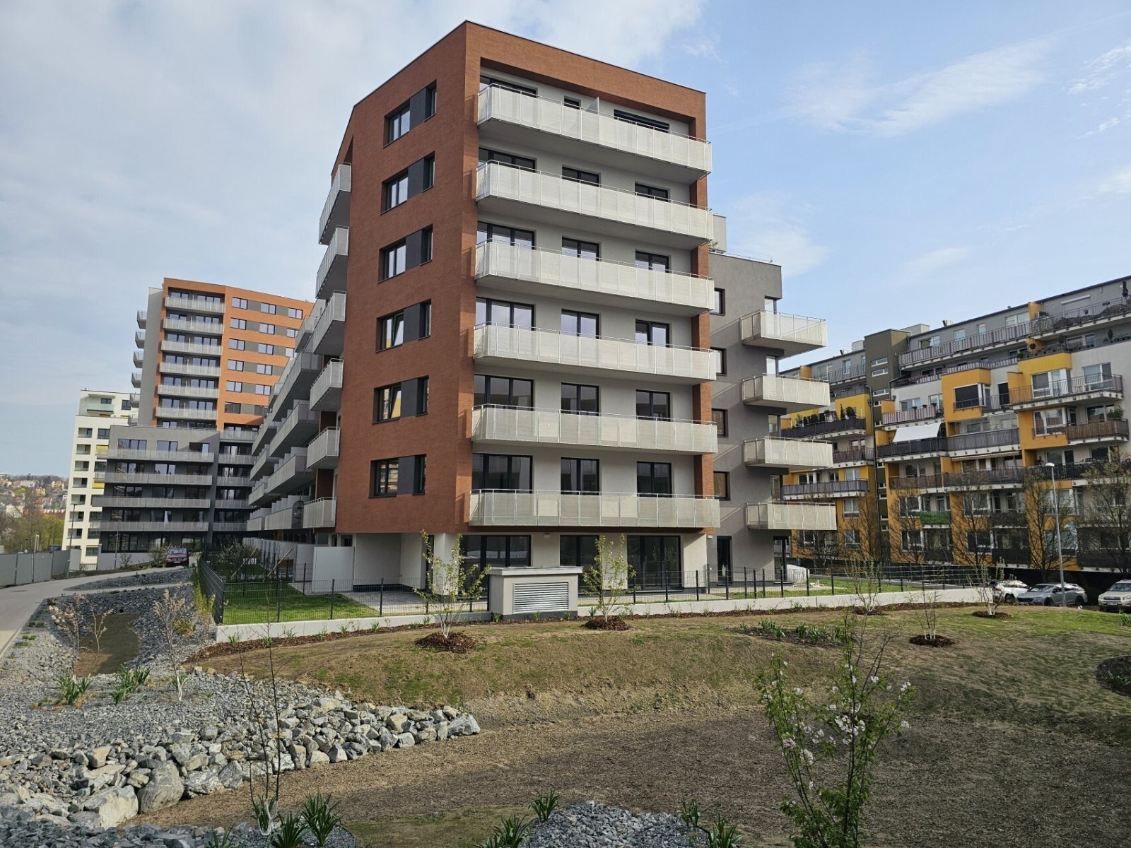 Nabízíme k dlouhodobému pronájmu nový byt 2+kk (52,4 m²) s velkým balkónem (9 m²) a uzavíratelnou garáží (19 m²) ve 3. patře novostavby na Praze 9, Libeň, ulice Gerstelova.