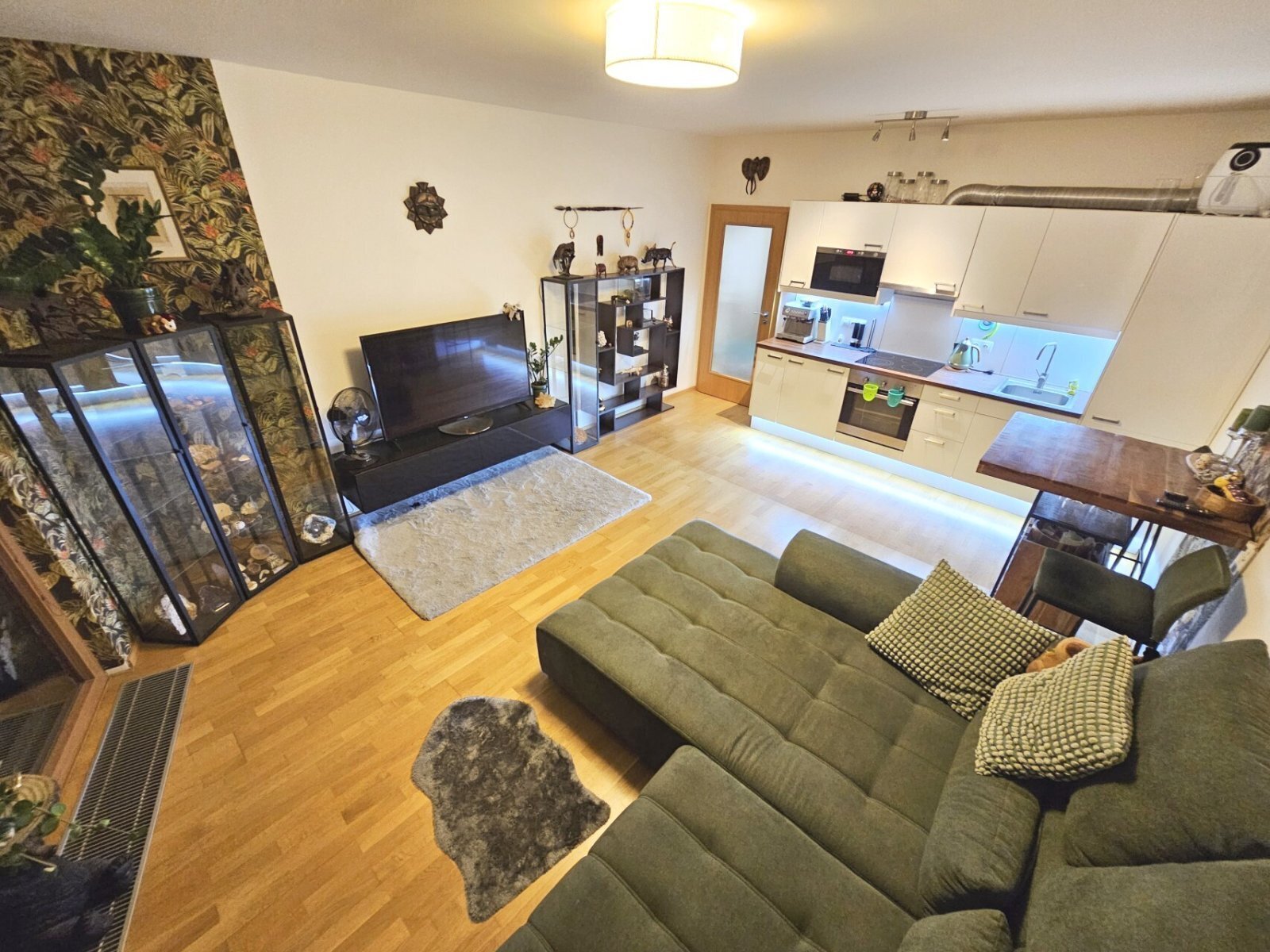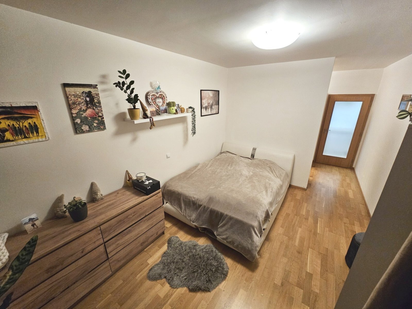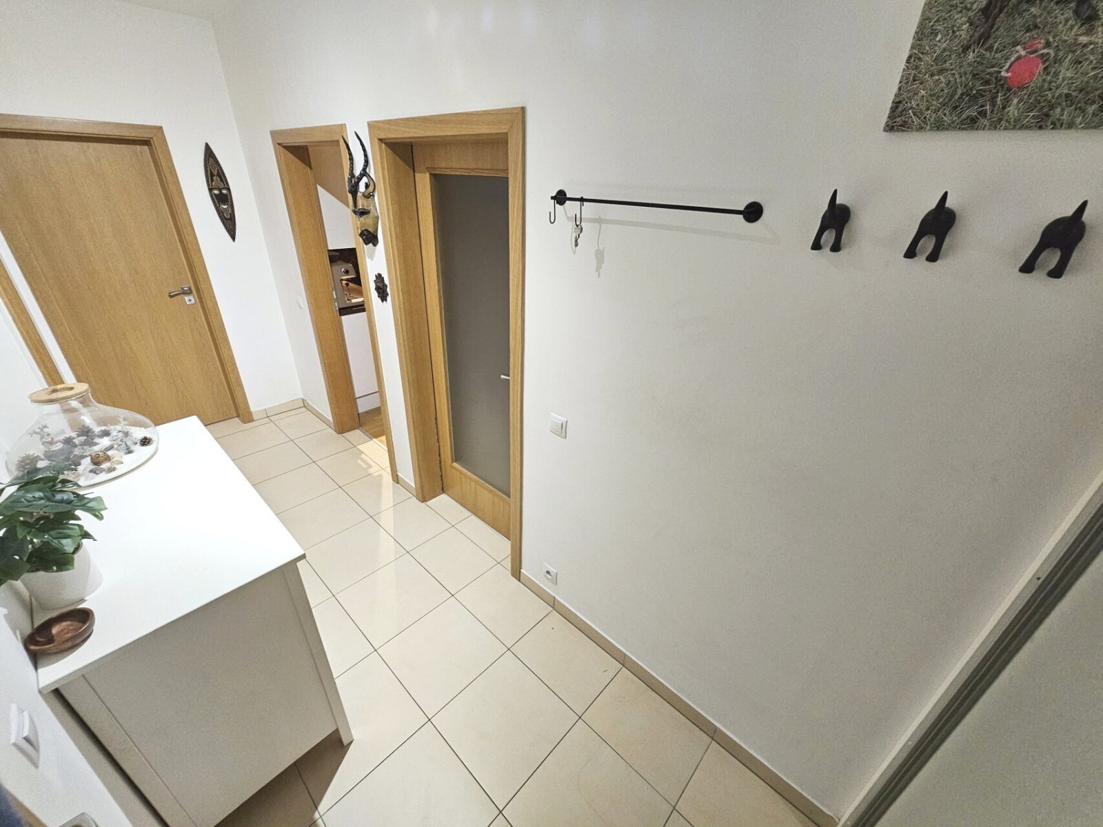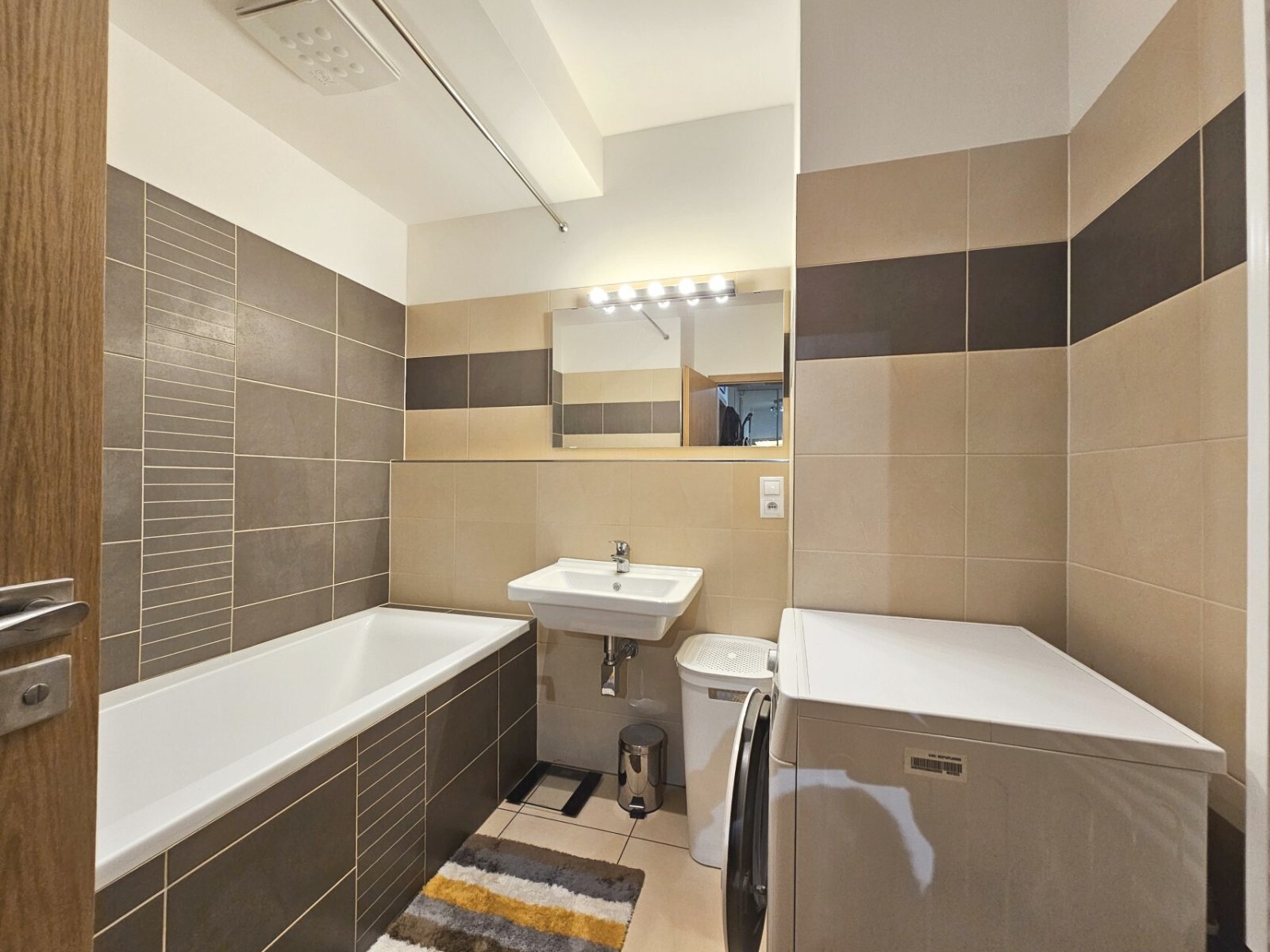 V bytě se nachází velký obývací pokoj s kuchyňským koutem (trouba, varná deska, digestoř, myčka, lednice), ložnice se šatnou (šatní skříně), koupelna s vanou, samostatné WC, předsíň s vestavěnou skříní a k bytu náleží balkón, garážové stání a sklepní kóje. Vše v ceně.
