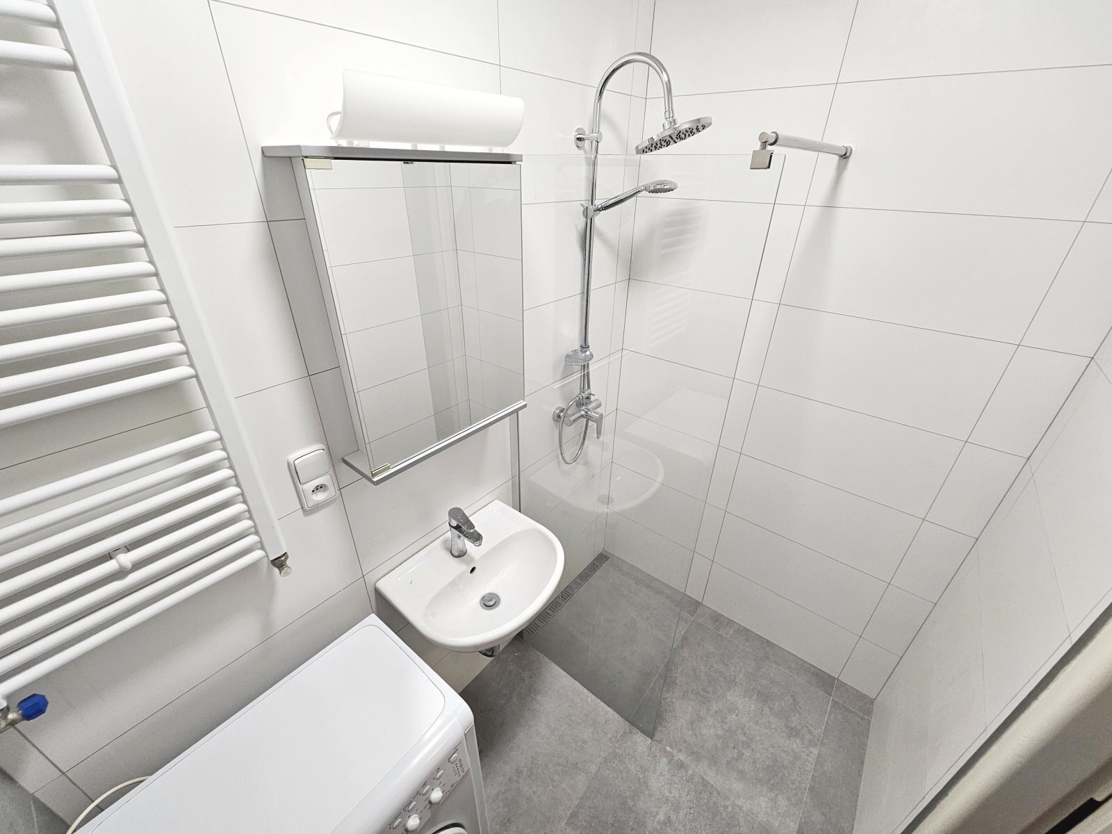 V bytě se nachází pokoj s kuchyňskou linkou (21 m2, sklokeramická varná deska, digestoř, lednice) + koupelna se sprchovým koutem a s WC (pračka) + předsíň.